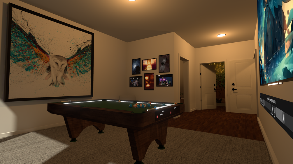 - 16 easily adjustable picture frames for you to edit (2 in living room, 6 in game room and 8 in bedroom)